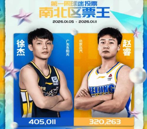 北区的票王,是来自北京队的后场悍将赵睿,他的票数为320,263,赵睿在去年夏天加盟北京队,这也是让他收获很多北京队球迷的支持,当然了,赵睿能够成为北区的票王,也离不开广东队球迷的支持。不过,赵睿的票数来看,想要超过徐杰,似乎有一些难度,毕竟,徐杰领先的票数达到了8万票。